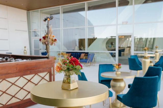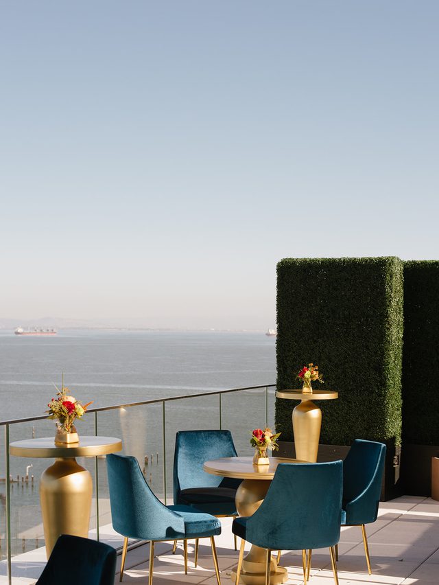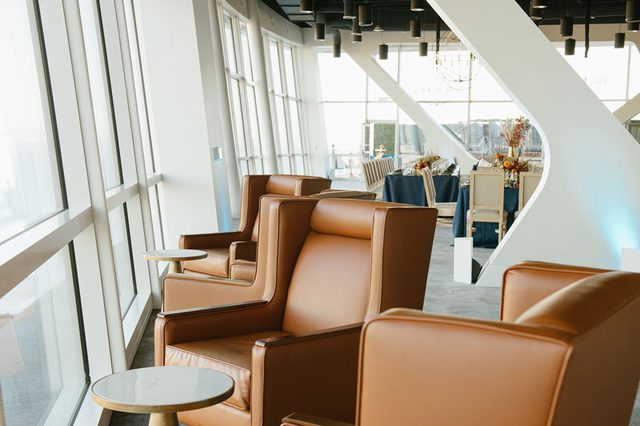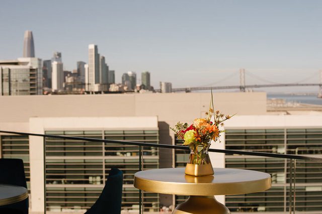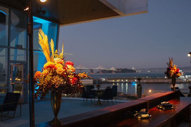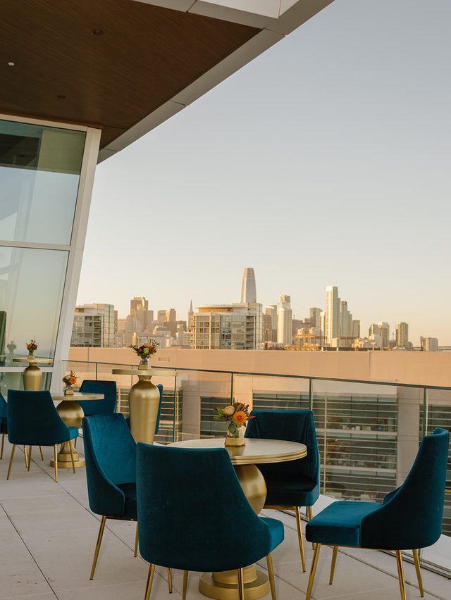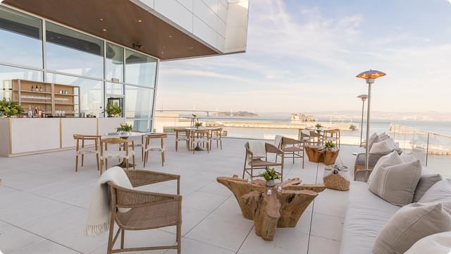 Above the Rim, located on the 9th floor of Chase Center in San Francisco, is a premier 3,900-square-foot private event space offering stunning views of the city skyline and Bay waterfront park. The space features floor-to-ceiling windows and an outdoor terrace that can be tented. Above the Rim can be paired with Chase Center’s premier clubs for seamless transitions from daytime business meetings to evening dinners or receptions.