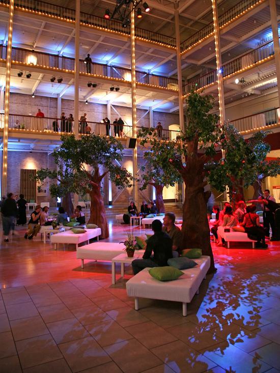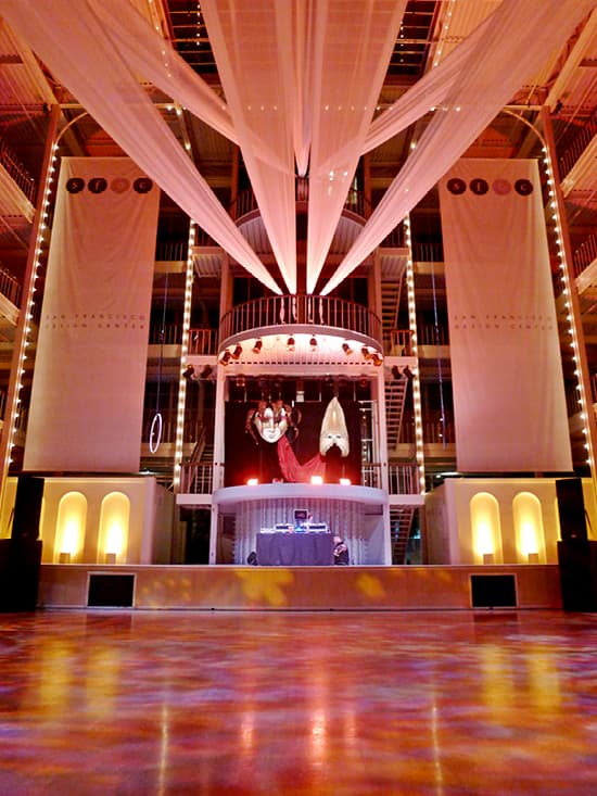 The Galleria features a four-story atrium with a retractable skylight, offering natural light for daytime events and a starry view for nighttime functions. Upper mezzanine floors provide balcony overlooks of the main venue. Located in San Francisco’s South of Market area, it’s ideal for events like custom-catered dinners, business meetings, fundraisers, and seminars. With a large capacity and A/V capabilities, it’s also perfect for performances and presentations, with branding images easily projected onto panels by the stage.