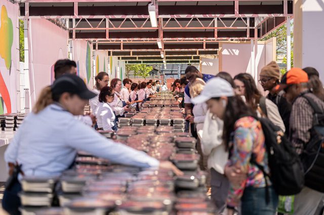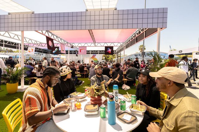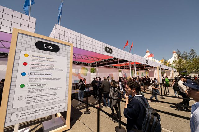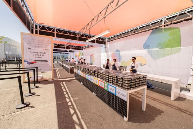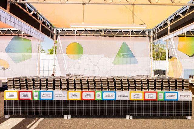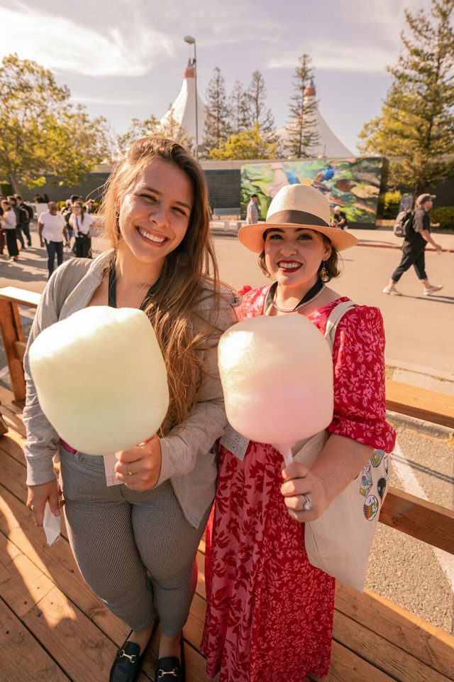 Tech conference focused on sustainability and customized “wow” moments including; a juice shop, Mountain View slushies, roaming food carts, custom ombre cotton candy, disco fries. Lunch service utilized over 6,000 reusable containers in lieu of compostable serveware and a menu designed to be utensil free. Menu printed on plantable seed paper for guests to repurpose. Reusable containers will be used again each year. Dinner service included market stands.