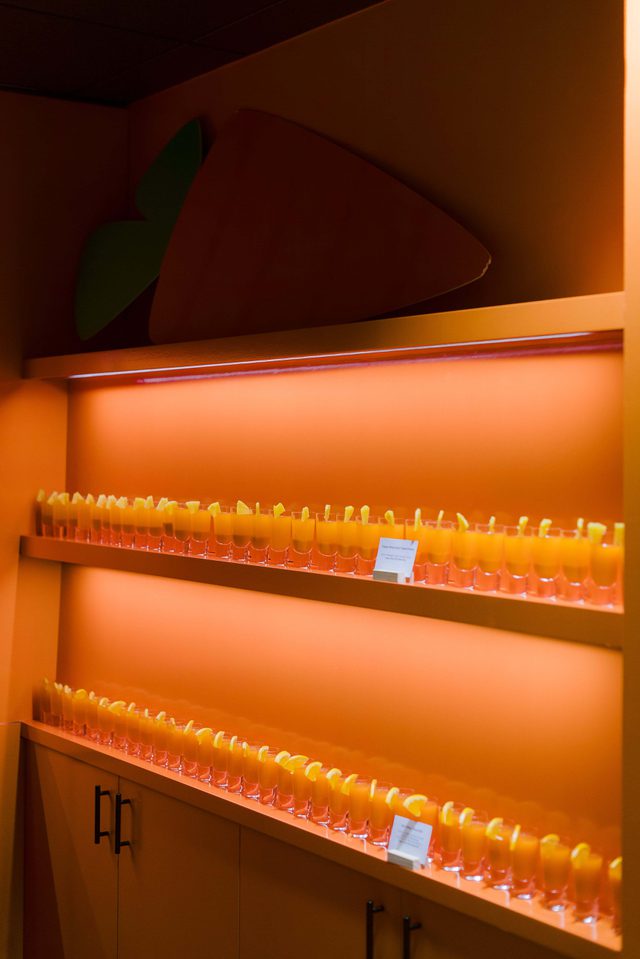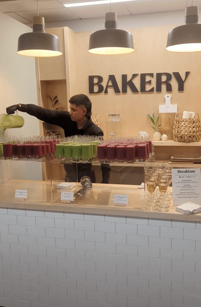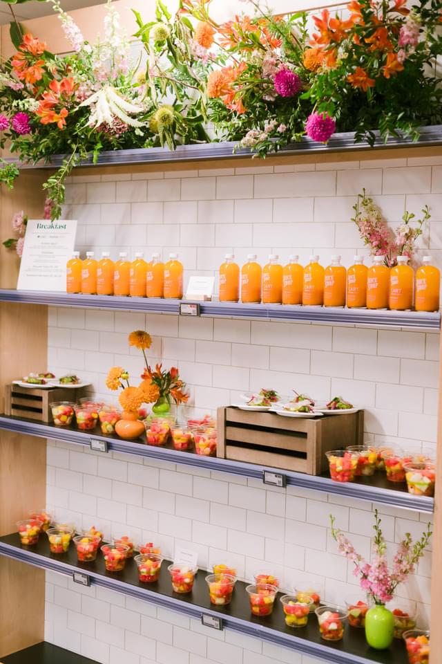 Interactive food elements: Make your Crepe, Decorate Pop Tarts. Specialty bars on each floor.