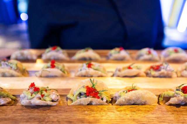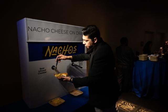 With the main event of the evening being the concert performance, the menu focused on casual “concert” style food offerings. This included branded sliders, street tacos, ice cream carts, nacho cheese on draft, and other concert comfort foods.